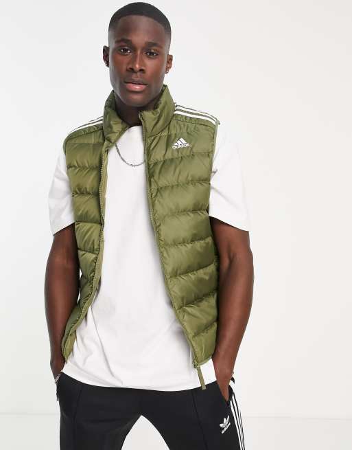Chaleco de plumón caqui con tres rayas de adidas Outdoor