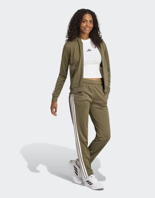 Chándal verde oliva tierra con detalle de 3 rayas Essentials de adidas Performance