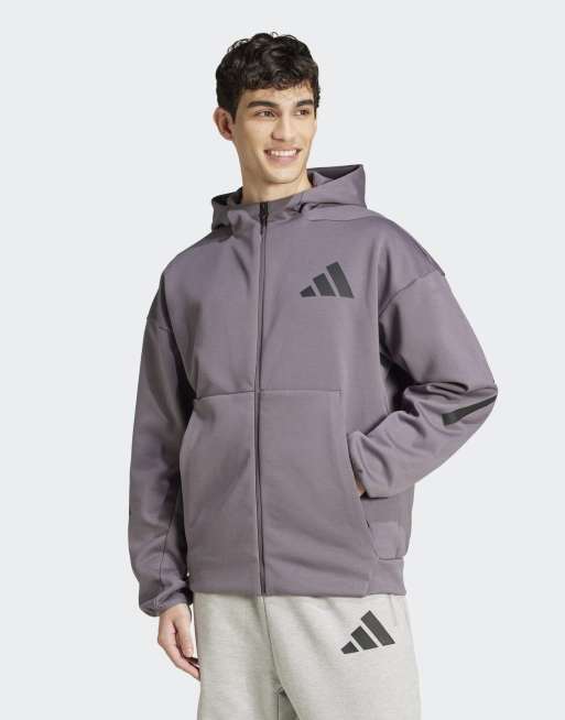 Chaqueta de chándal gris tierra con capucha y cremallera Z.N.E. de adidas Performance