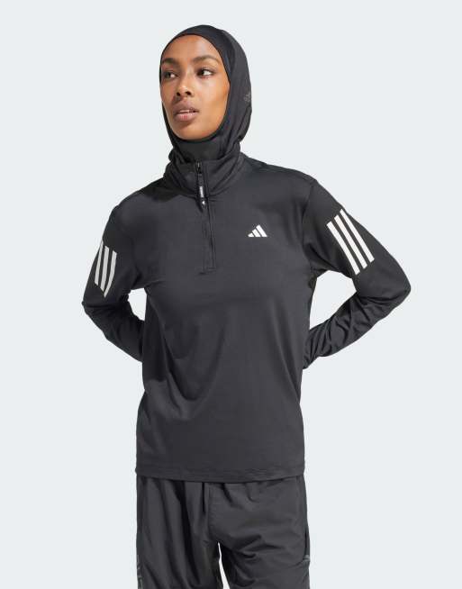Chaqueta negra con media cremallera Own The Run de adidas Running