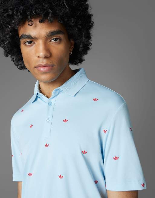 Polo azul cielo de golf con trébol estampado de adidas Originals