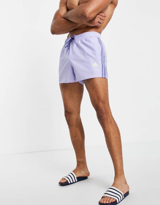 Shorts de baño morados con tres rayas de adidas Swim