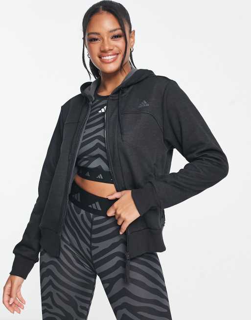 Sudadera corta negra con capucha y cremallera Hyperglam de adidas Training