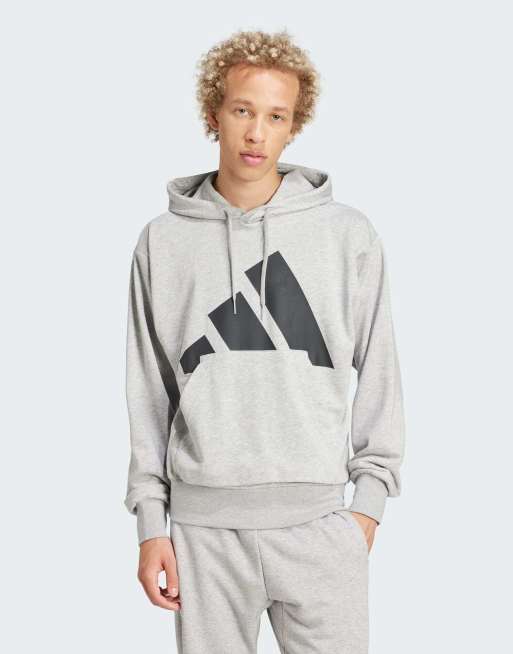 Sudadera gris medio jaspeado y negra básica con capucha y logo grande de felpa rizada de adidas Performance