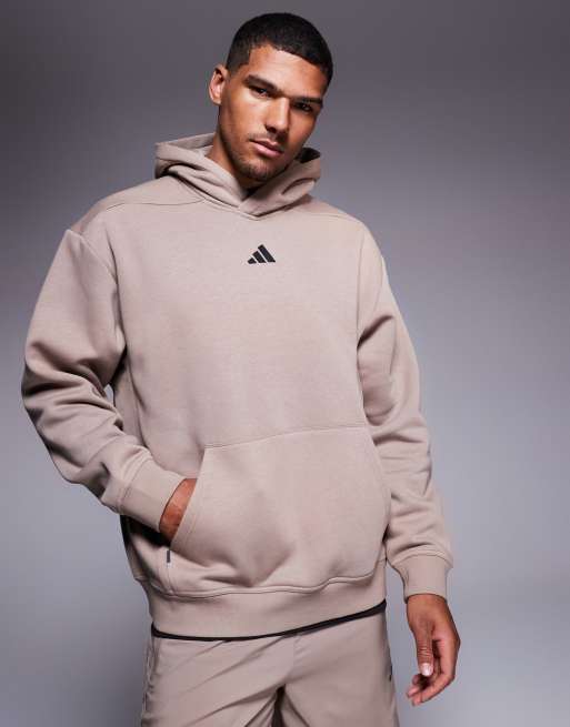 Sudadera marrón tiza extragrande con capucha Strength de adidas Training