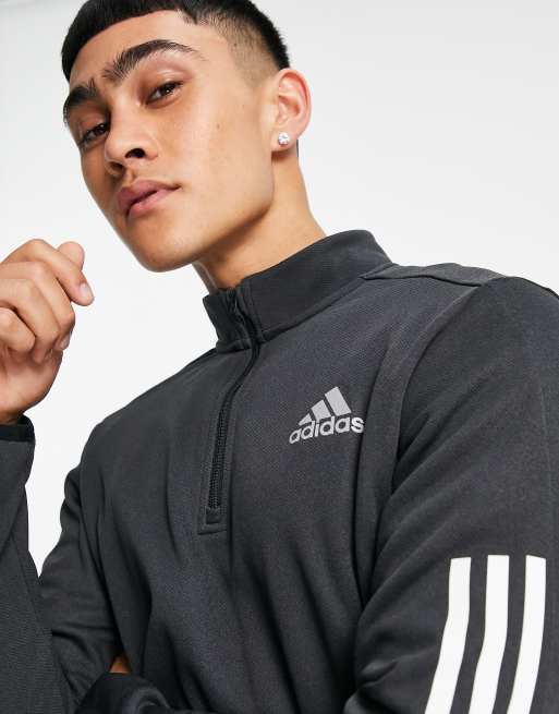 Sudadera negra con cremallera corta y detalle de 3 rayas de adidas Training