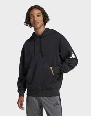 Sudadera negra y blanca básica de corte suelto con capucha y logo de 3 barras de felpa de rizo Essentials de adidas Performance