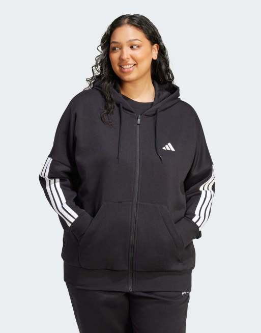 Sudadera negra y blanca con capucha, cremallera y detalle de 3 rayas Essentials de adidas Performance Plus