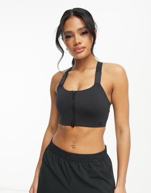 Sujetador deportivo negro de sujeción alta con cremallera en la parte delantera de adidas Training