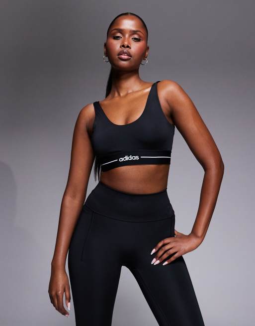 Sujetador deportivo negro de sujeción baja con detalle lineal Hyperglam de adidas Training