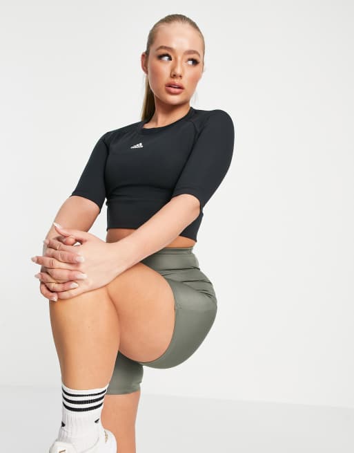 Top corto negro de manga larga Sportforia de adidas Training