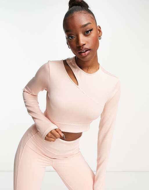 Top rosa corto de manga larga con abertura Hyperglam de adidas Training