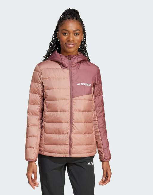 Chaqueta color arcilla cálido y burdeos ligera con capucha de plumón Terrex Multi Light Down de adidas