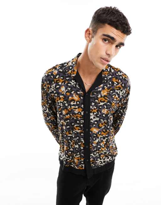 Camisa negra extragrande con estampado de leopardo abstracto y bordes en contraste de ADPT