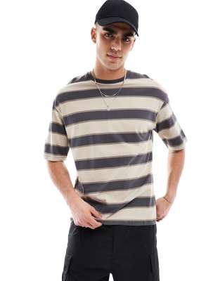 Camiseta a rayas beis extragrande con acabado lavado de ADPT