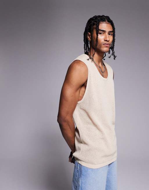 Camiseta blanco hueso extragrande sin mangas de croché de ADPT