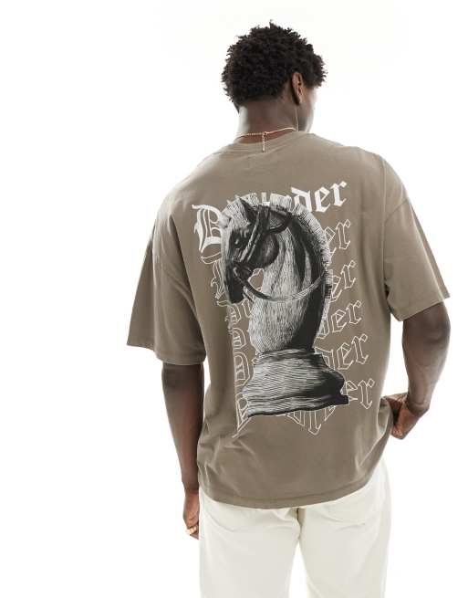 Camiseta extragrande con lavado marrón y estampado de ajedrez en la espalda de ADPT
