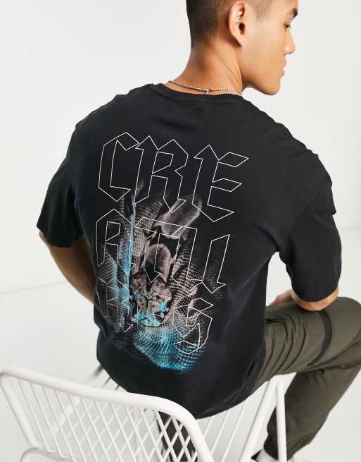 Camiseta negra extragrande con estampado gráfico de serpiente en la espalda de ADPT