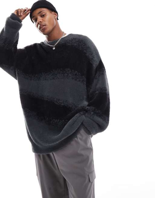 Jersey gris negruzco extragrande con cuello redondo y estampado diagonal de ADPT