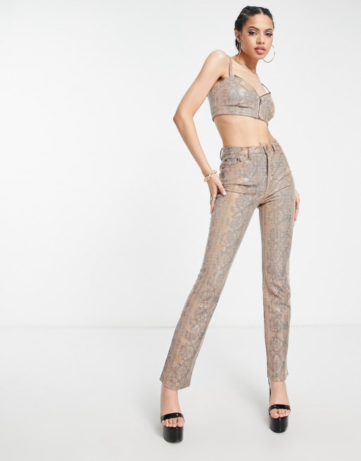 Conjunto de americana, bralette y pantalones de pernera recta y talle alto de cuero sintético Heston de AFRM