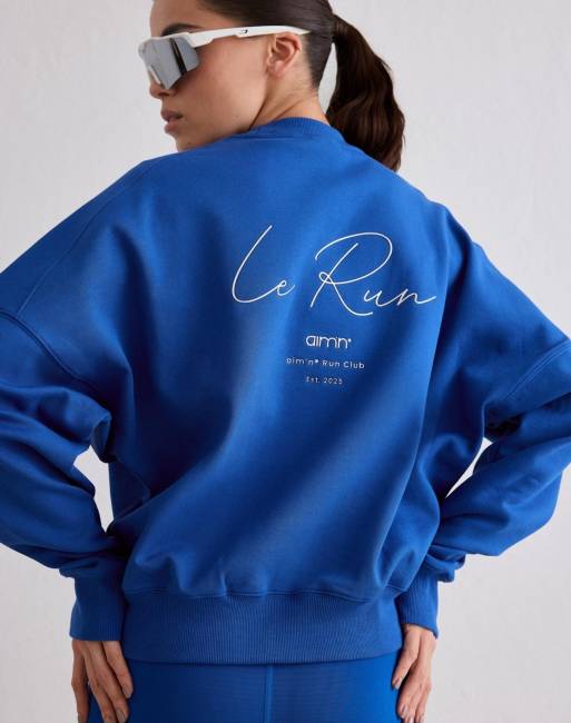 Aim'n - Sudadera azul eléctrico para correr con estampado "Le run"
