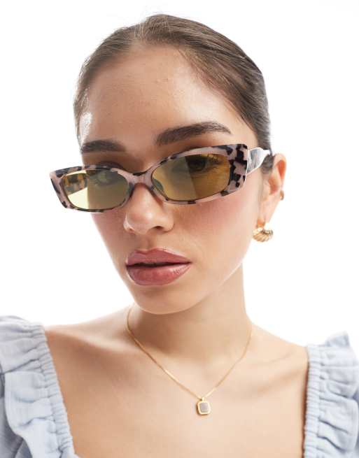 Gafas de sol marrón claro efecto carey con montura rectangular en ángulo con lentes verdes Equinox de AIRE