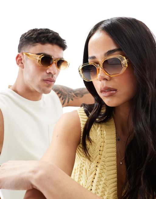 Gafas de sol doradas y marrones con montura hexagonal Top Grade de AJ Morgan