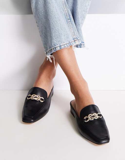 Mules negros con cadena dorada y puntera cuadrada de cuero Onidda de ALDO