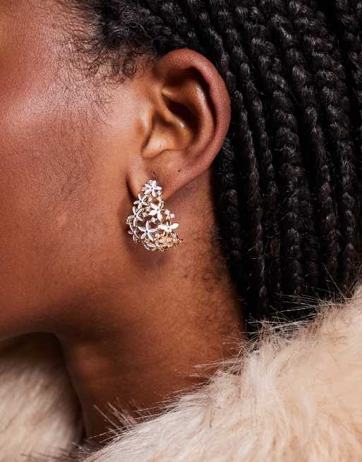 Pendientes dorados con forma de gota y flores pequeñas perladas de ALDO