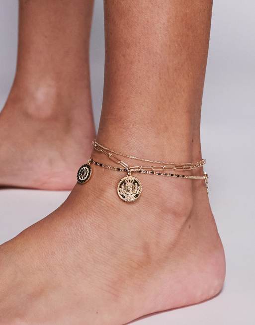 Tobillera dorada de varias hileras con colgante redondo Magiclove de ALDO