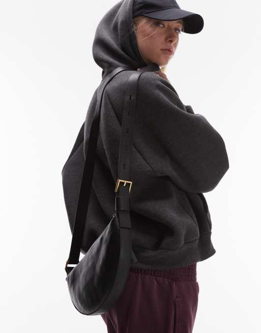 Bandolera negra con diseño de media luna de cuero de AllSaints