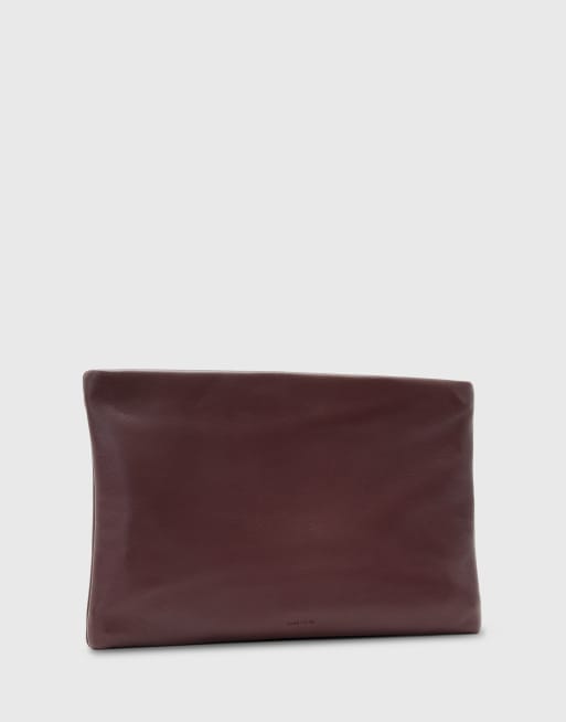 Bolso clutch burdeos con cremallera de cuero Bettina de AllSaints
