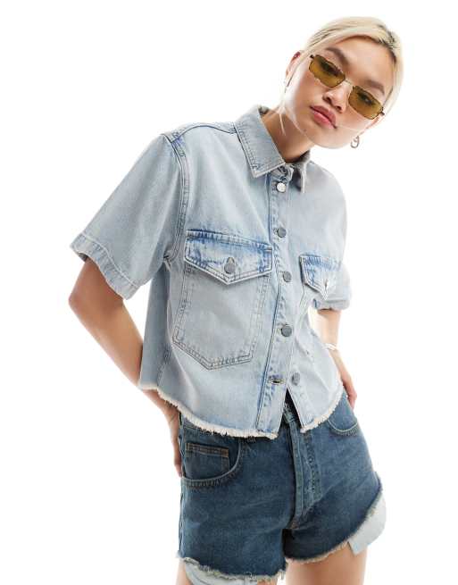 Camisa vaquera corta de corte cuadrado con lavado azul claro Tove de AllSaints