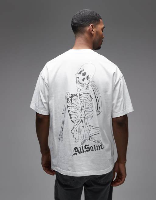Camiseta blanca de manga corta con logo gráfico y estampado en la espalda Skelly de AllSaints