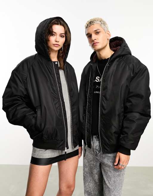 Chaqueta bomber negra unisex extragrande y acolchada Thornson exclusiva de AllSaints x ASOS