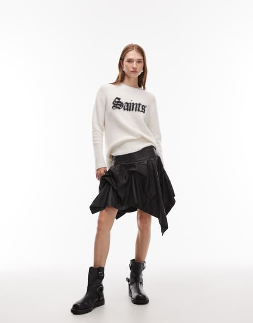 Minifalda negra con volante de cuero Hitch Lea de AllSaints