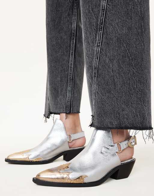 Mules plateados y dorados metalizado con tachuelas Desola de AllSaints