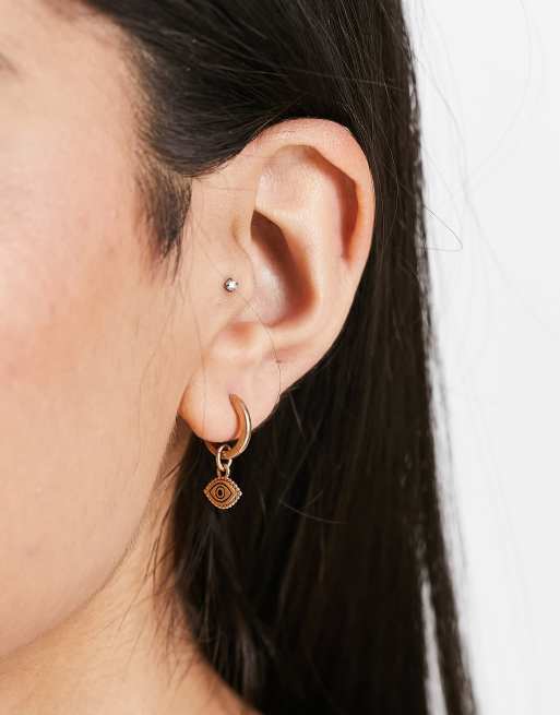 Pendientes de aro pequeños dorados con colgante de ojo turco y mano de Fátima de AllSaints