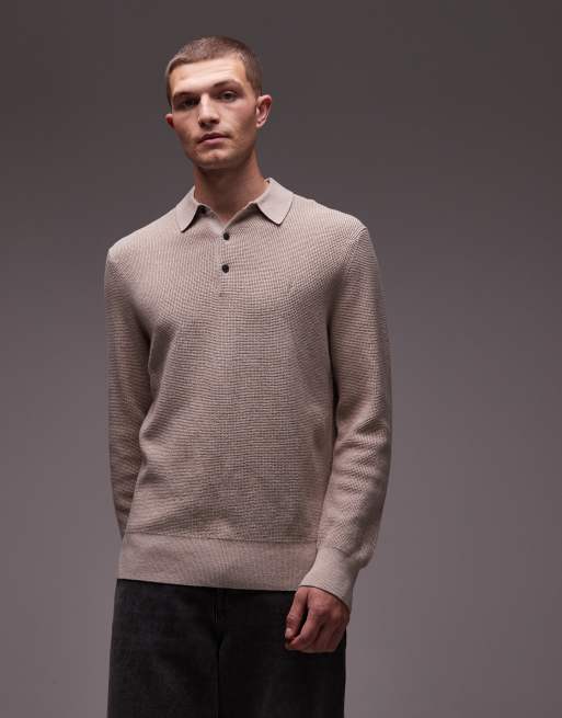 Polo beis de punto gofrado de AllSaints