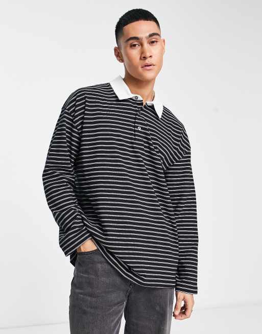 Polo negro a rayas de manga larga Ave de AllSaints