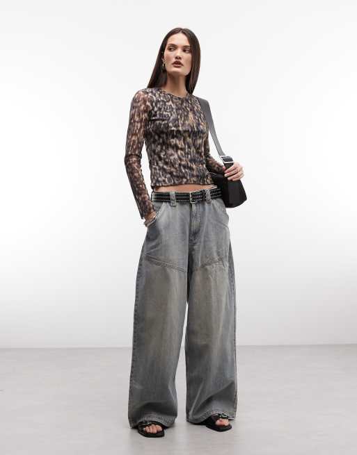 Top de manga larga con estampado de leopardo de malla Ellie de AllSaints