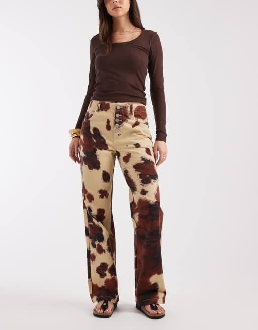 Vaqueros color crema de pernera ancha de estilo carpintero con estampado de vaca Tay de AllSaints