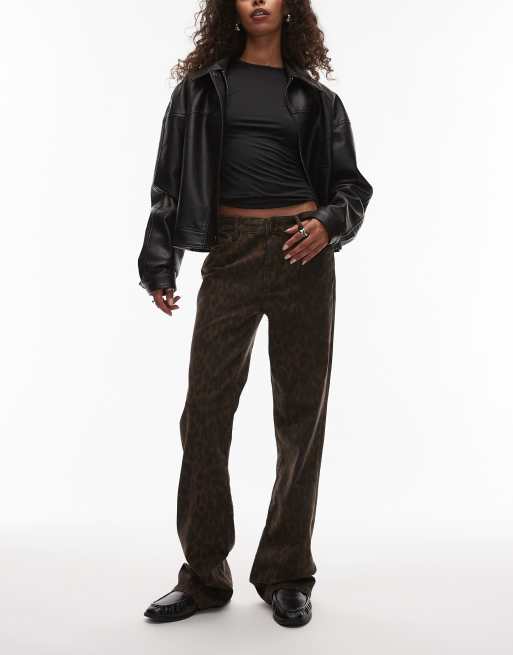 Vaqueros marrones y negros de corte bootcut slim con estampado de leopardo Haldan de AllSaints