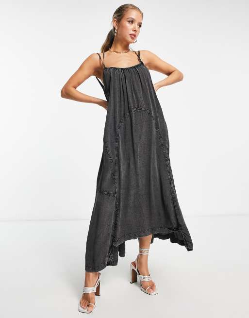 Vestido midi negro lavado de corte muy amplio exclusivo de AllSaints x ASOS