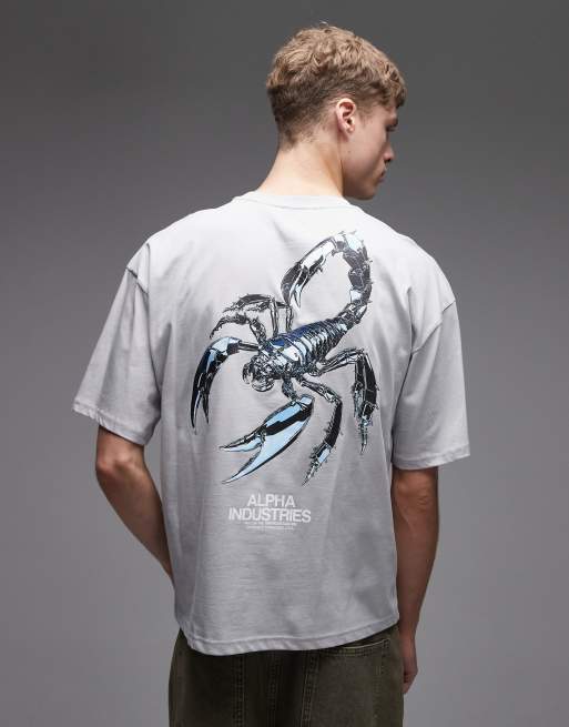Camiseta gris claro con estampado de escorpión en la espalda de Alpha Industries
