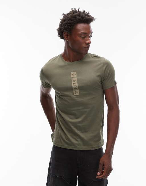 Camiseta verde con logo en el mismo tono de Alpha Industries