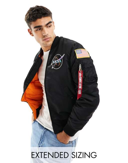 Chaqueta bomber negra con parche de la NASA y bolsillo MA-1 VF de Alpha Industries