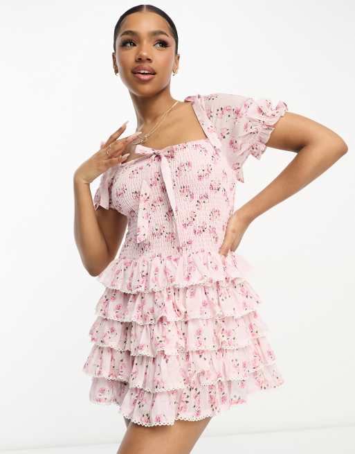Vestido corto rosa escalonado con estampado de florecitas Darcy de Amy Jane London