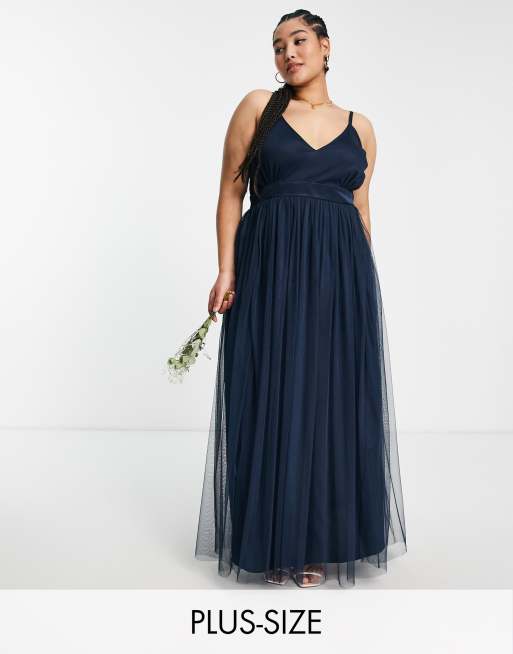 Vestido de dama de honor largo azul marino con escote pronunciado de tul de Anaya With Love Plus