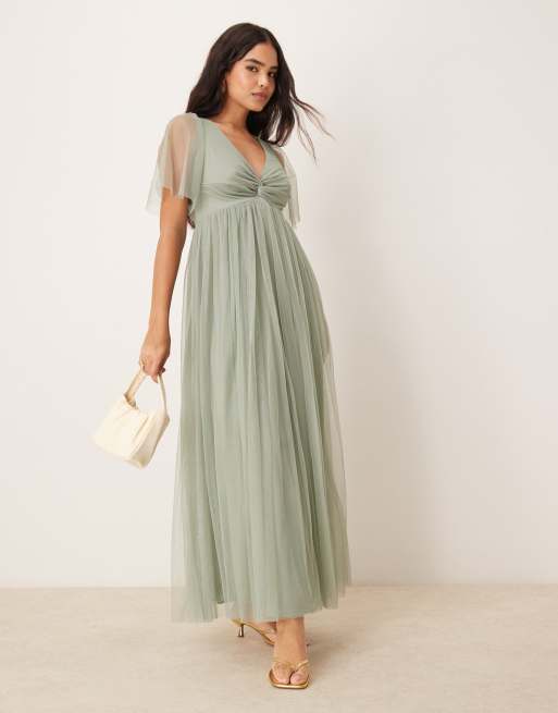Vestido de dama de honor verde escarcha con detalle retorcido de Anaya